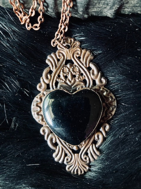Real Electroformed Pigeon Foot Pendant with Black Obsidian N226