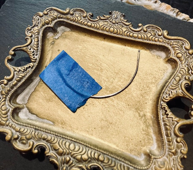 One antique (used) autopsy needle. Used for sewing up dead bodies after examination is completed. Needle is sharp so end is taped.