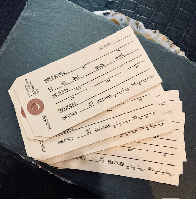 Blank autopsy toe tag from a mortuary. Listing is for one tag.