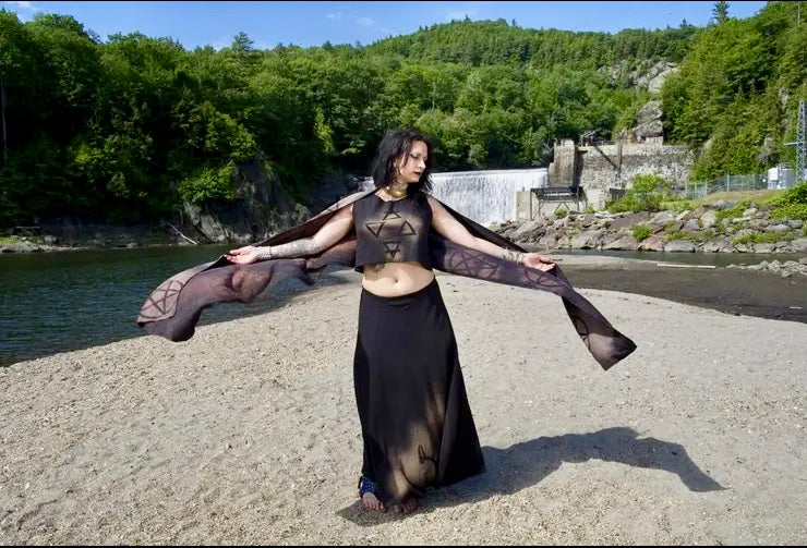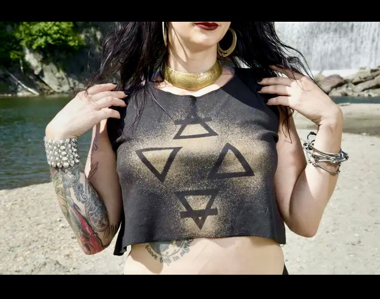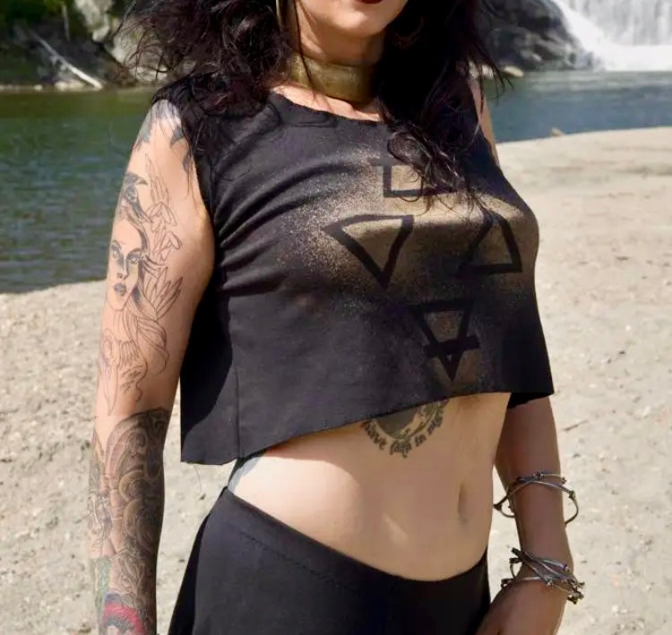This shirt is meant to drape and have a loose cropped fit. From side underarm to side underarm the Medium measures 22" and the Large 25".