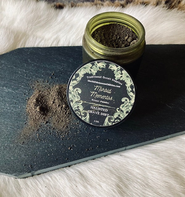 This is a 2 ounce, absinth green, glass jar of Graveyard Dirt from the notoriously haunted Bachelors Grove Cemetery in Illinois. I asked permission of the inhabitants and left an offering of thanks when taking this dirt. It did come from within the confines of the cemetery but not from a grave. It can be used in many seances, spirit summoning and necromancy spells and rituals.