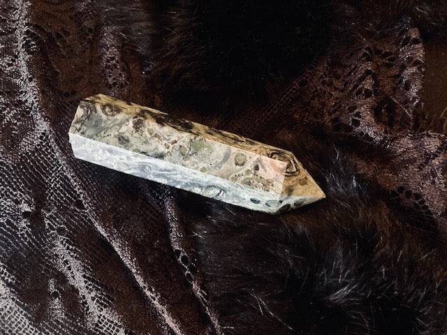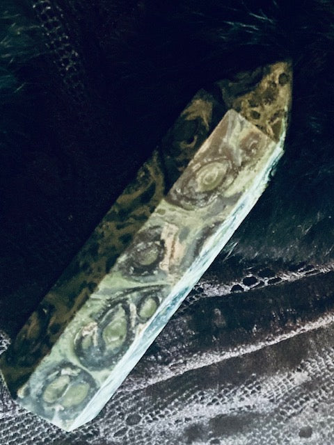 Kambaba Jasper is a stone of peace, tranquility, and fertility. It reminds us of our connection to all living things of the present, past and future. Rich in orbs and swirls of green and black. This stone is commonly used to aid in meditation.