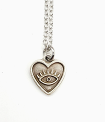 Stainless steel all seeing heart and eye pendant. Hangs on stainless chain. Pendant is small, approx. 1/4".