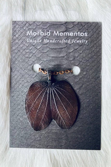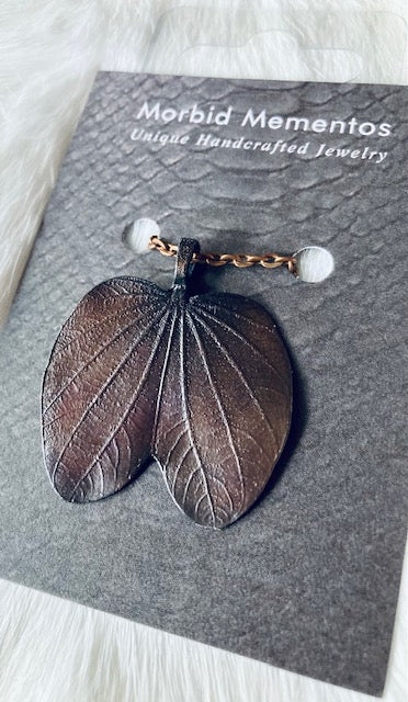 Electroforming is a chemical process in which copper metal is deposited and plated onto another material. It is a fickle and tedious process that takes quite some time but results in one of a kind pieces. It encases organic materials in metal so they are sturdy and last forever!